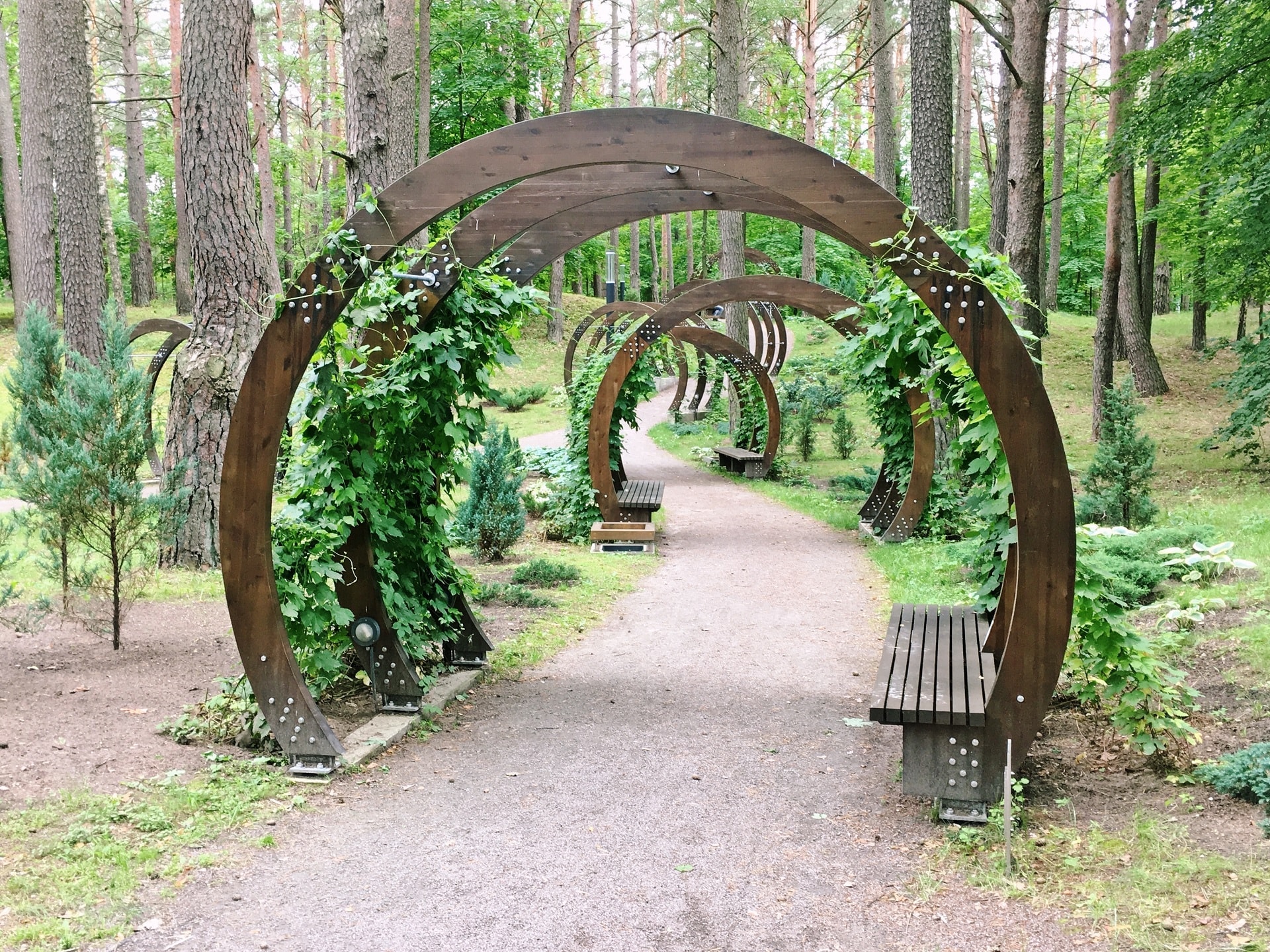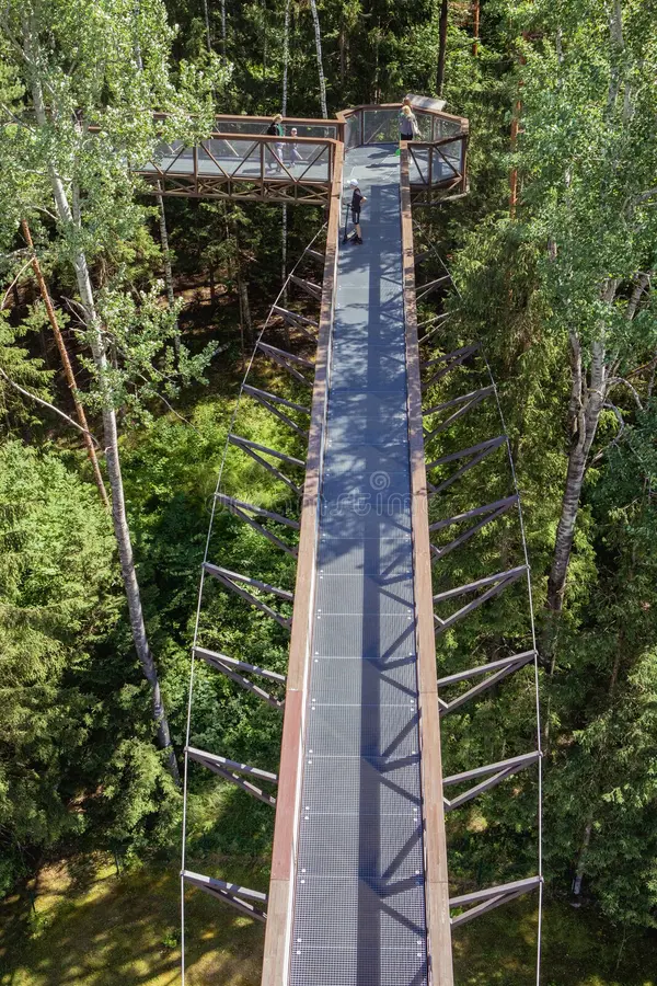 Seejärel tõuseme kõrgustesse – jalutame 300 meetri pikkusel Baltimaade ainukesel puuladvarajal. Raja lõpus asub vaatetorn ja -platvorm, kust avaneb meeliköitev panoraam metsale, Šventoji jõele ja Leedu kõige kõrgemale kirikule. Meie jalutuskäik jätkub maapinnal – käime vahval puuskulptuuride metsarajal.